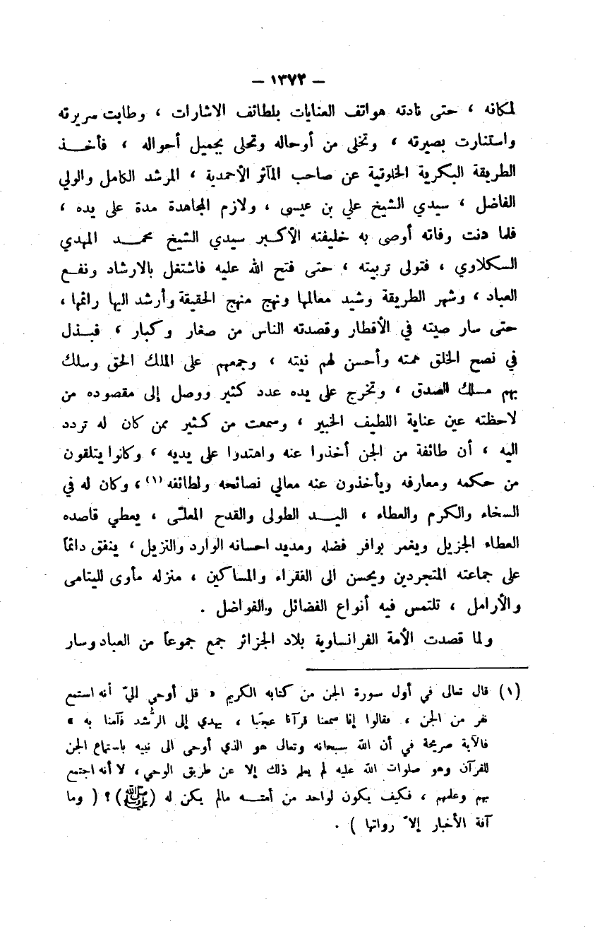 ولما قصدت الأمة الفرانساوية بلاد الجزائر جمع جموعاً من العباد وسار