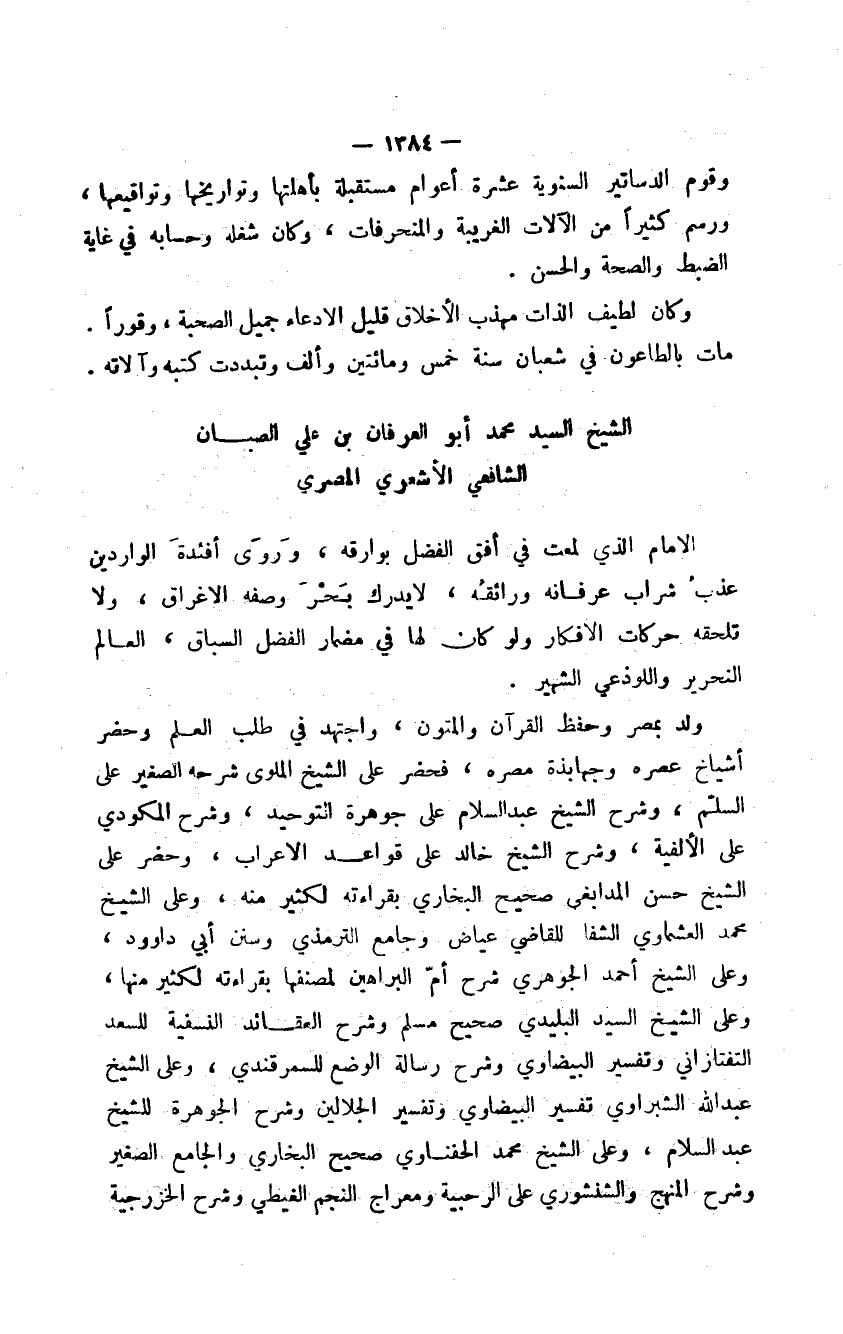 الشيخ السيد محمد أبو العرفان بن علي الصبان الشافعي الأشعري المصري