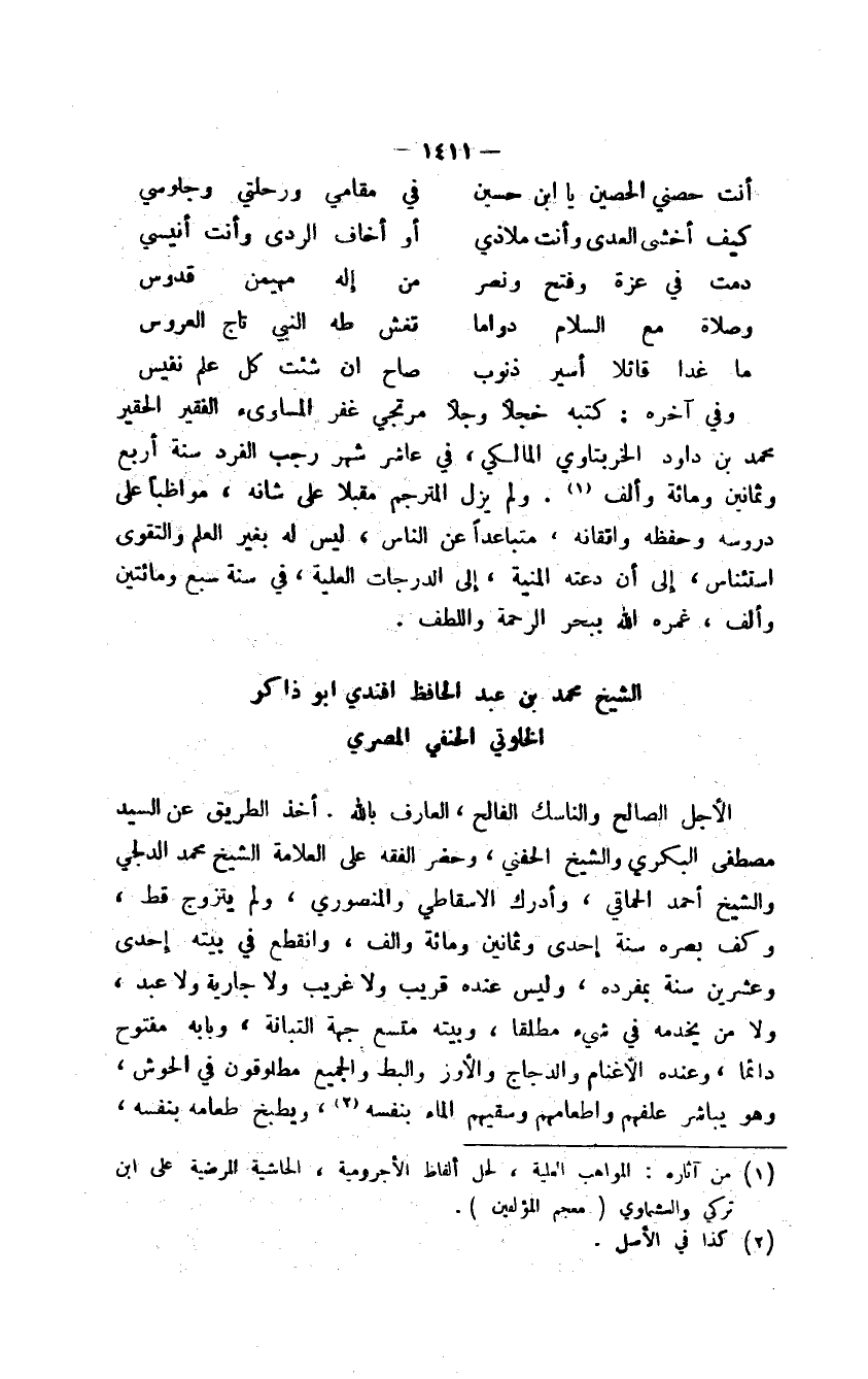 الشيخ محمد بن عبد الحافظ أفندي أبو ذاكر الخلوتي الحنفي المصري