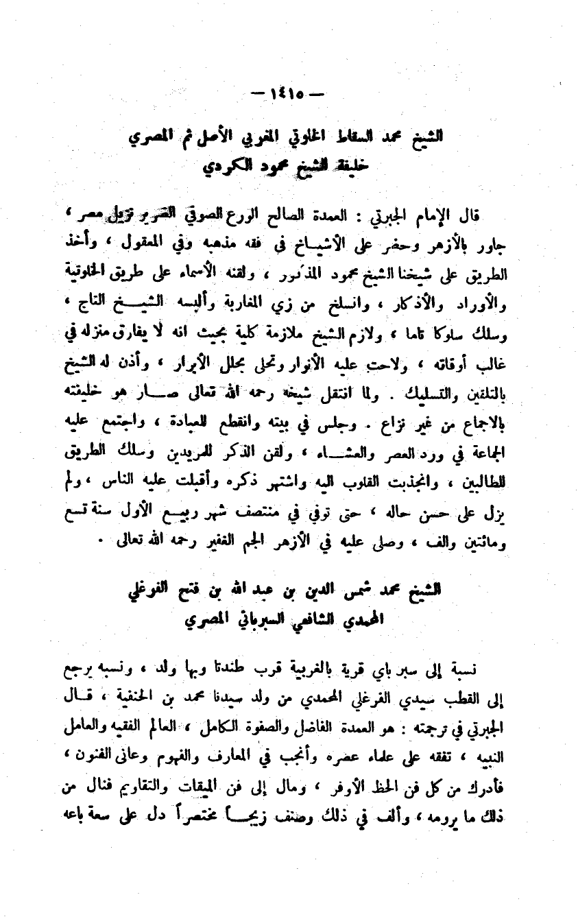الشيخ محمد شمس الدين بن عبد الله بن فتح الفرغلي المحمدي الشافعي السبرباني المصري