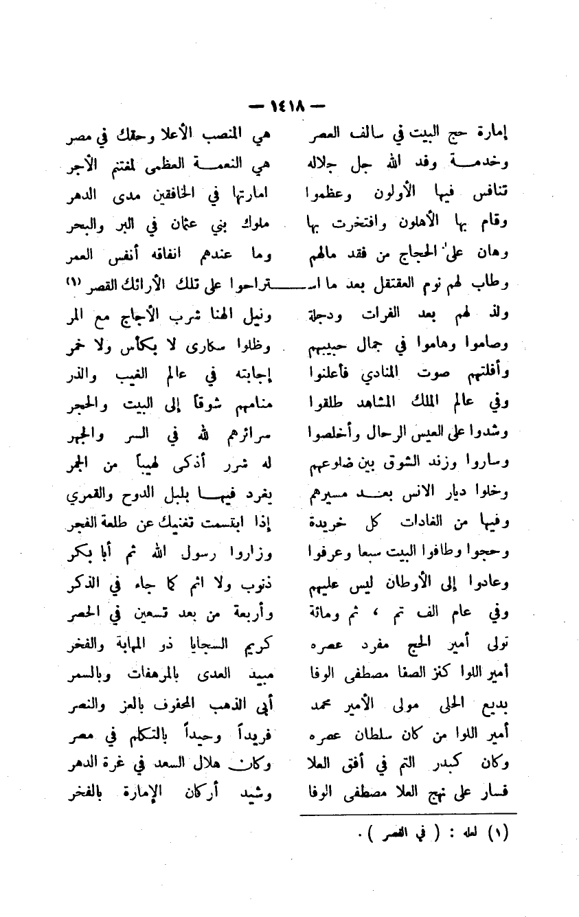 إمارة حج البيت في سالف العصر ... هي المنصب الأعلا وحقك في مصر