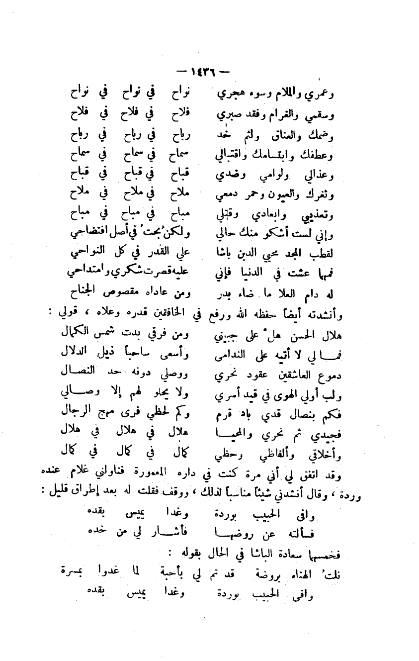 وعمري والملام وسوء هجري ... نواح في نواح في نواح