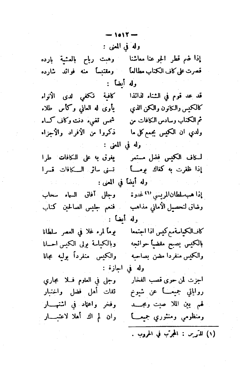 قصرت على كاف الكتاب مطالعاً ... ومقتبساً منه فوائد شارده