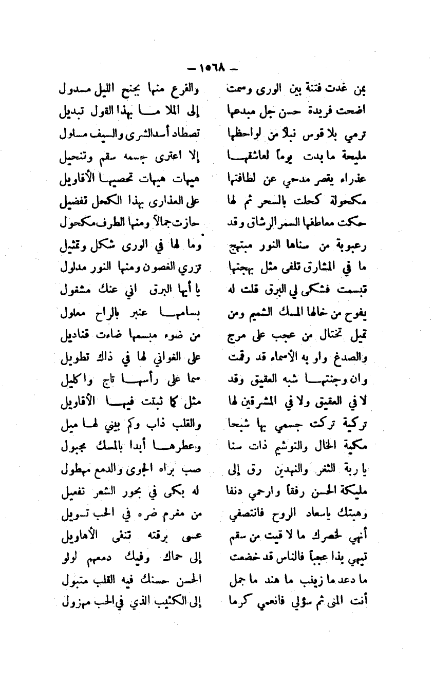 تميل تختال من عجب على مرج ... من ضوء مبسهما ضاءت قناديل