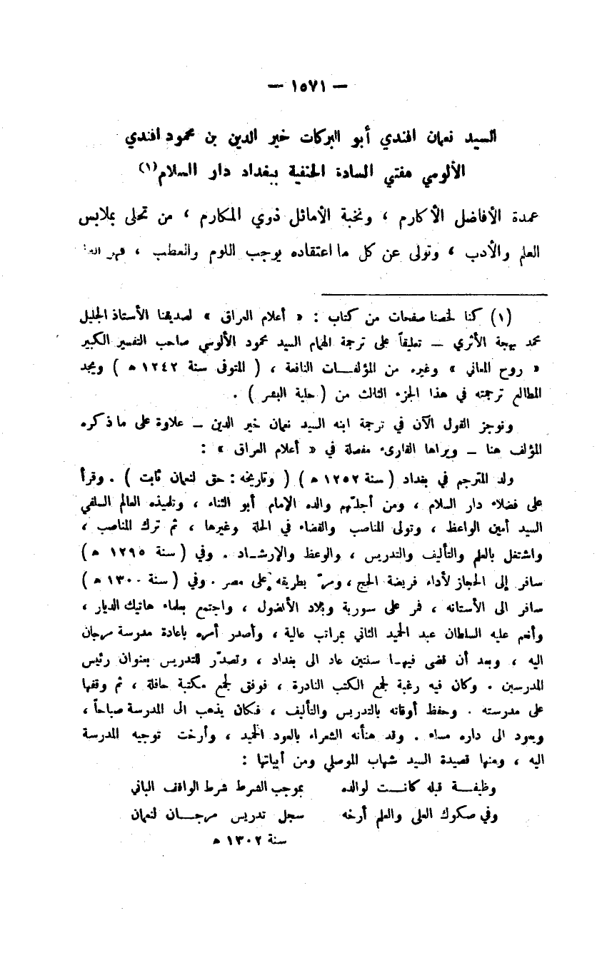 الألومي مفتي السادة الحنفية ببغداد دار السلام