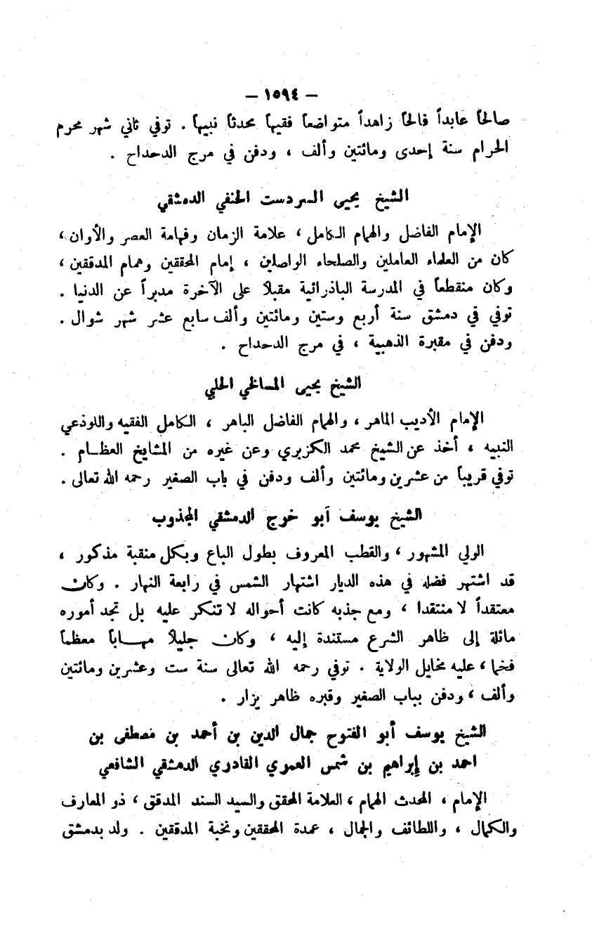 الإمام، المحدث الهمام، العلامة المحقق والسيد السند المدقق، ذو المعارف والكمال، واللطائف والجمال، عمدة المحققين ونخبة المدققين. ولد بدمشق