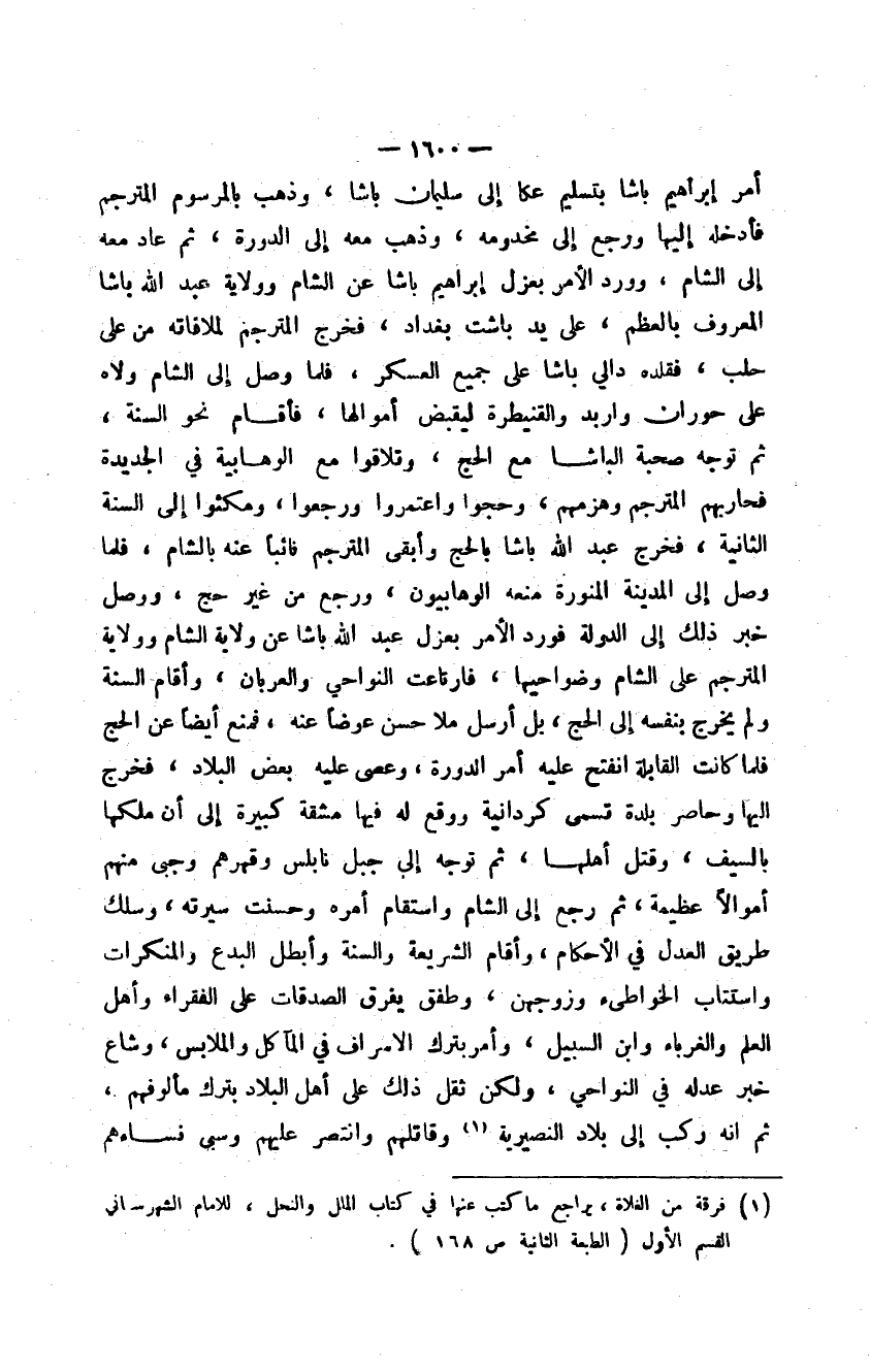 أمر إبراهيم باشا بتسليم عكا إلى سليمان باشا، وذهب بالمرسوم المترجم فأدخله إليها ورجع إلى مخدومه، وذهب معه إلى الدورة، ثم عاد معه إلى الشام، وورد الأمر بعزل إبراهيم باشا عن الشام وولاية عبد الله باشا المعروف بالعظم، على يد باشت بغداد، فخرج المترجم لملاقاته من على حلب، فقلده دالي باشا على جميع العسكر، فلما وصل إلى الشام ولاه على حوران وغربد والقنيطرة ليقبض أموالها، فأقام نحو السنة، ثم توجه صحبة الباشا مع الحج، وتلاقوا مع الوهابية في الجديدة فحاربهم المترجم وهزمهم، وحجوا واعتمروا ورجعوا، ومكثوا إلى السنة الثانية، فخرج عبد الله باشا بالحج وأبقى المترجم نائباً عنه بالشام، فلما وصل إلى المدينة المنورة منعه الوهابيون، ورجع من غير حج، ووصل خبر ذلك إلى الدولة فورد الأمر بعزل عبد الله باشا عن ولاية الشام وولاية المترجم على الشام وضواحيها، فارتاعت النواحي والعربان، وأقام السنة ولم يخرج بنفسه إلى الحج، بل أرسل ملا حسن عوضاً عنه، فمنع أيضاً عن الحج فلما كانت القابلة انفتح عليه أمر الدورة، وعصى عليه بعض البلاد، فخرج إليها وحاصر بلدة تسمى كردانية ووقع له فيها مشقة كبيرة إلى أن ملكها بالسيف، وقتل أهلها، ثم توجه إلى جبل نابلس وقهرهم وجبى منهم أموالاً عظيمة، ثم رجع إلى الشام واستقام أمره وحسنت سيرته، وسلك طريق العدل في الأحكام، وأقام الشريعة والسنة وأبطل البدع والمنكرات واستتاب الخواطئ وزوجهن، وطفق يفرق الصدقات على الفقراء وأهل العلم والغرباء وابن السبيل، وأمر بترك الإسراف في المآكل والملابس، وشاع خبر عدله في النواحي، ولكن ثقل ذلك على أهل البلاد بترك مألوفهم، ثم إنه ركب إلى بلاد النصيرية وقاتلهم وانتصر عليهم وسبى نساءهم