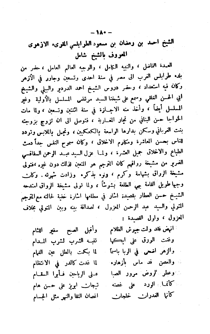 الشيخ أحمد بن رمضان بن مسعود الطرابلسي المقرىء الأزهري المعروف بالشيخ شامل