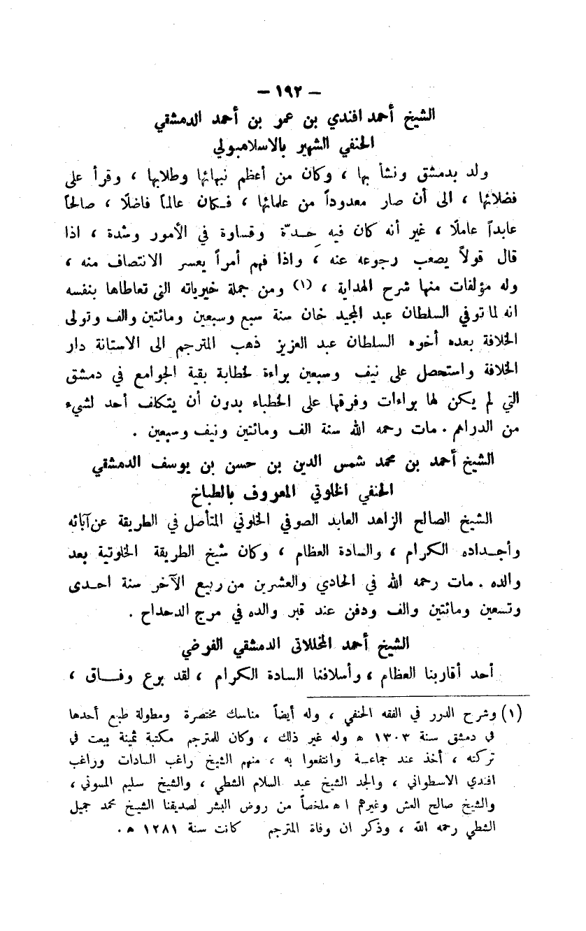 الشيخ أحمد أفندي بن عمر بن أحمد الدمشقي الحنفي الشهير بالاسلامبولي
