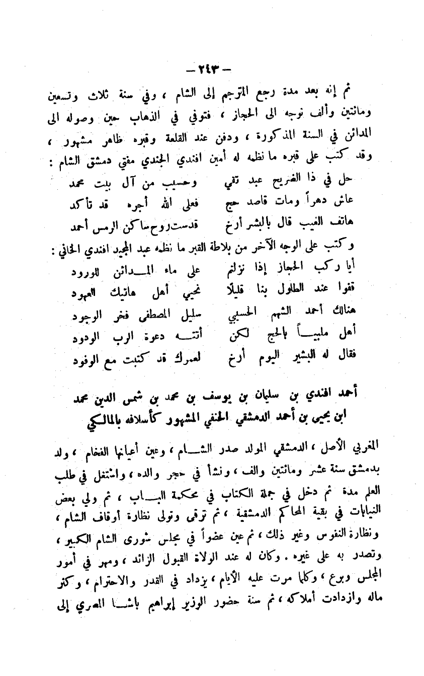 أحمد أفندي بن سليمان بن يوسف بن محمد بن شمس الدين محمد ابن يحيى بن أحمد الدمشقي الحنفي المشهور كأسلافه بالمالكي