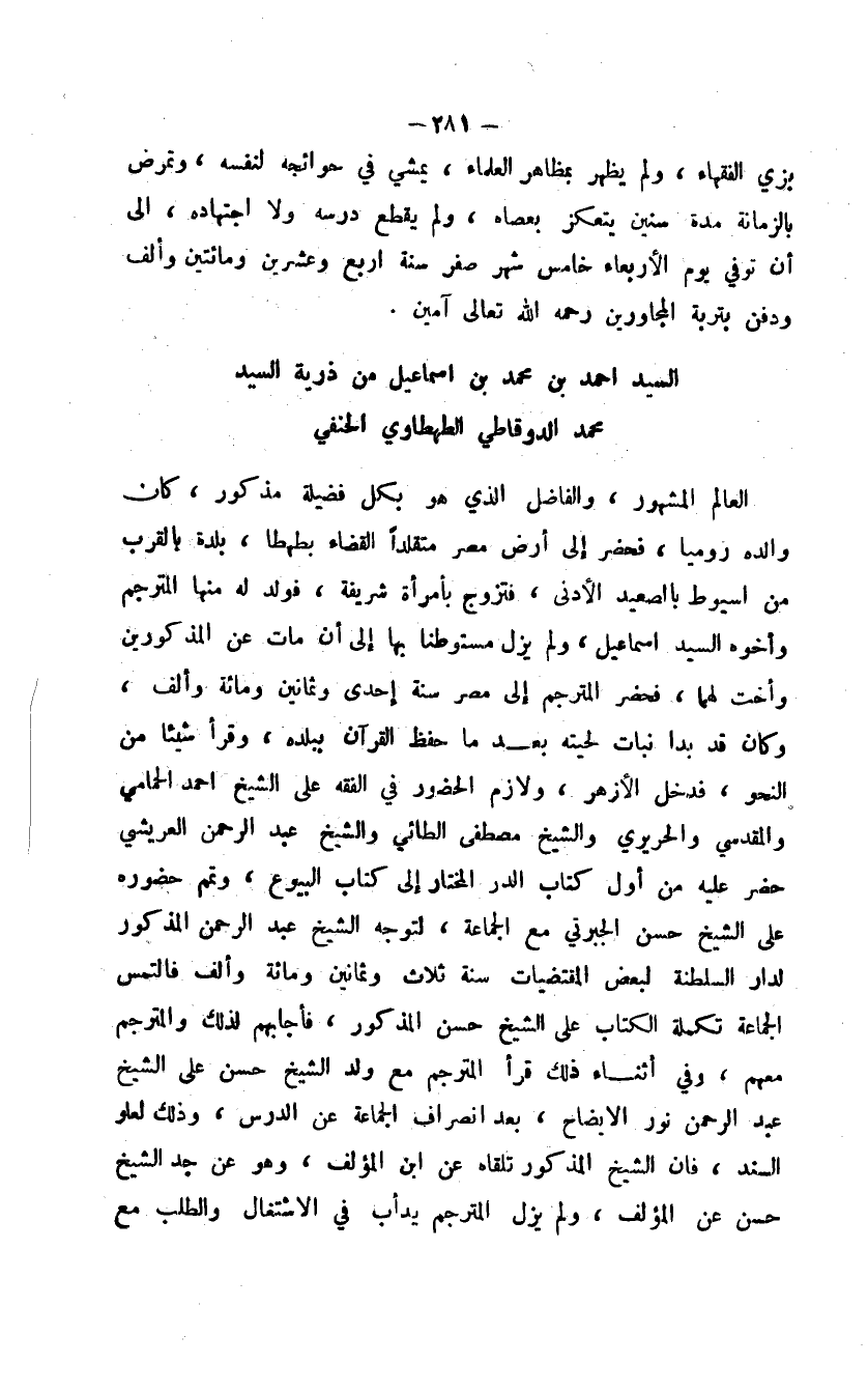 السيد أحمد بن محمد بن إسماعيل من ذرية السيد محمد الدوقاطي الطهطاوي الحنفي