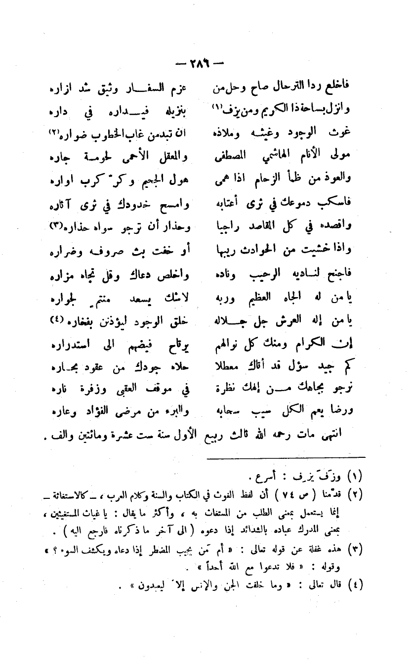 فاجنح لناديه الرحيب وناده ... واخلص دعاك وقل تجاه مزاره
