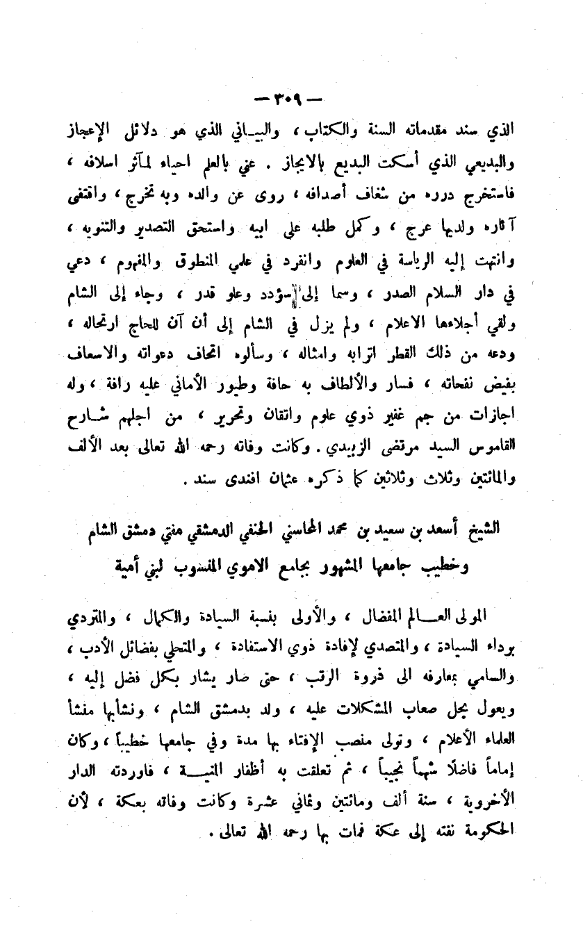 الشيخ أسعد بن سعيد بن محمد المحاسني الحنفي الدمشقي مفتي دمشق الشام وخطيب جامعها المشهور بجامع الأموي المنسوب لبني أمية
