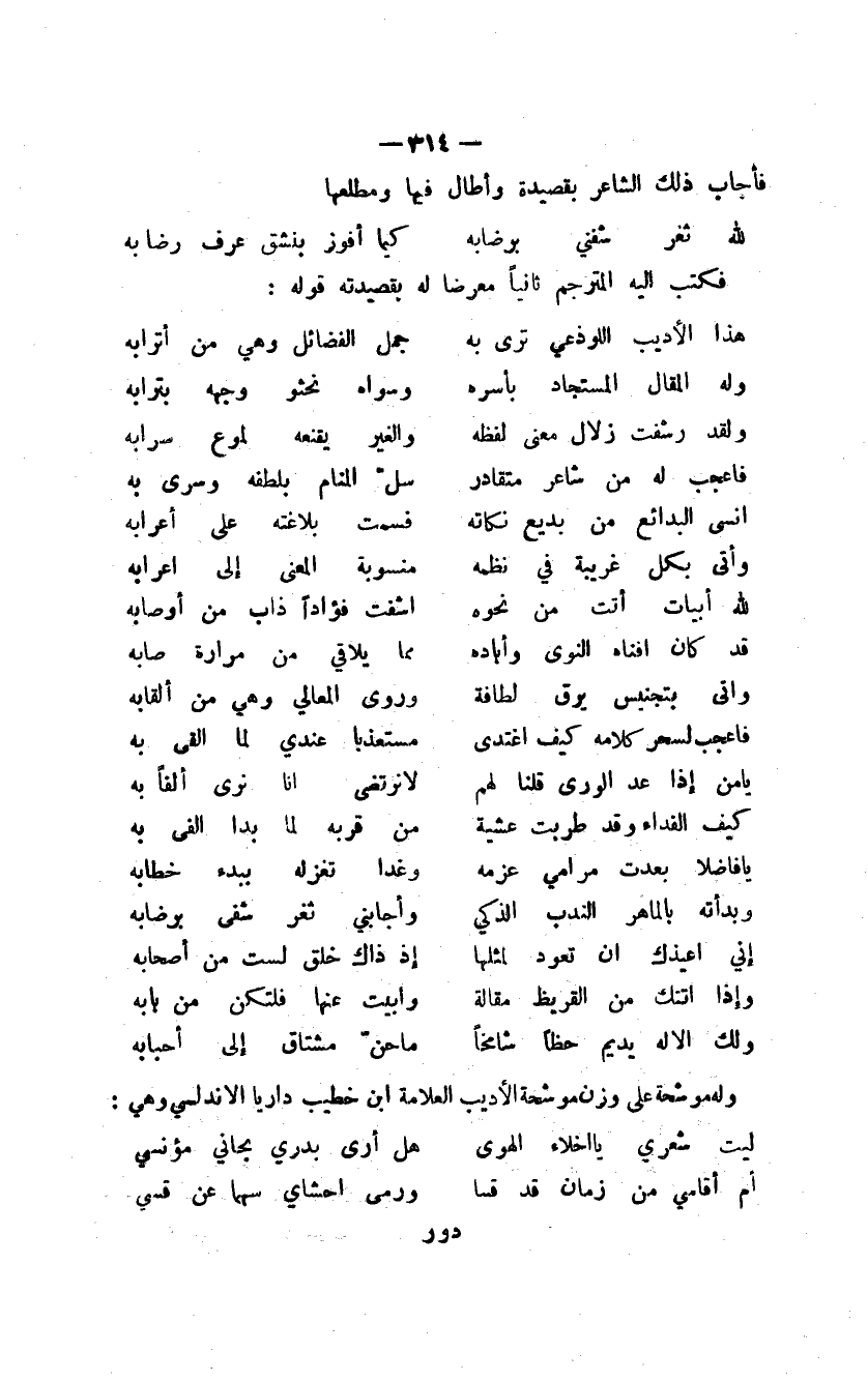 فكتب إليه المترجم ثانياً معرضاً له بقصيدته قوله: