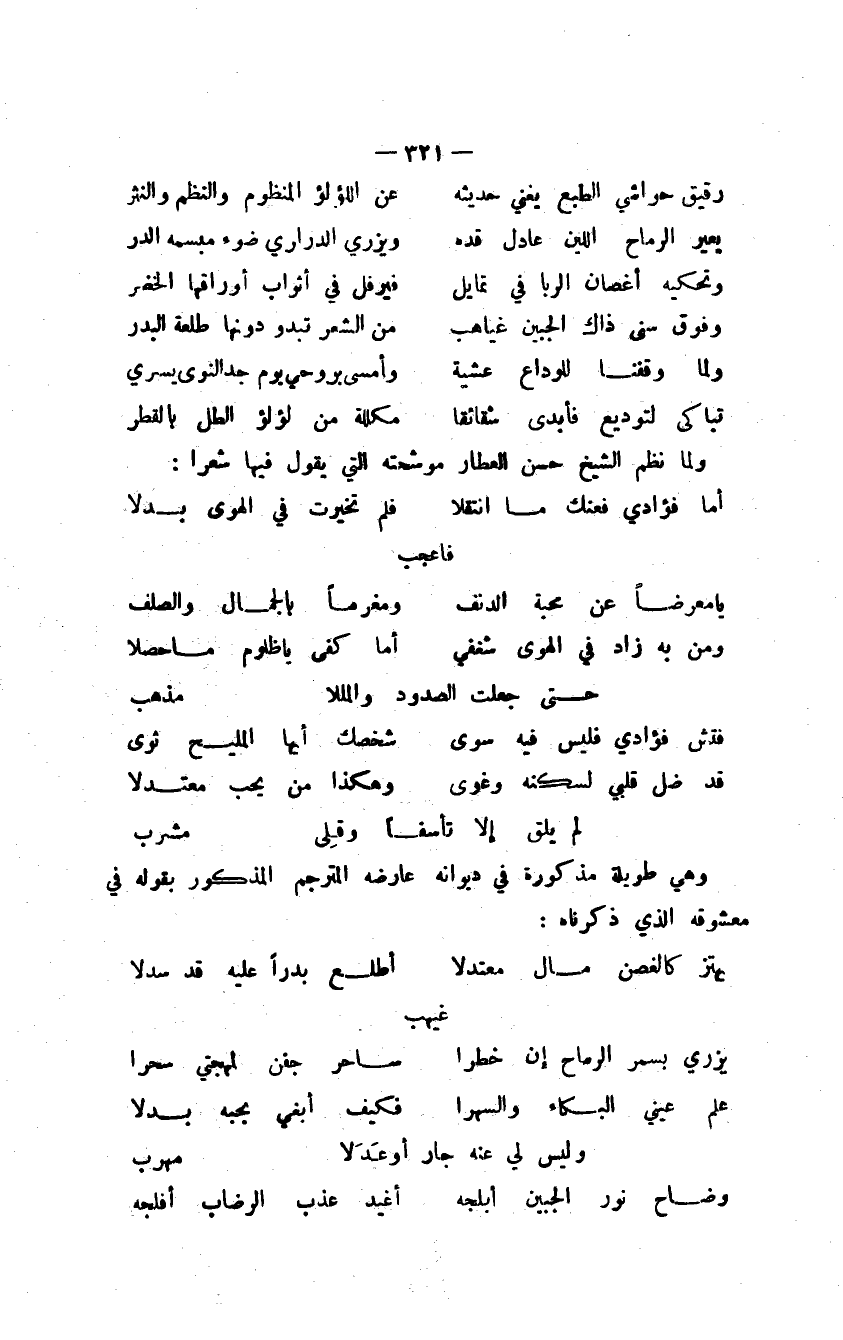 ولما نظم الشيخ حسن العطار موشحته التي يقول فيها شعراً: