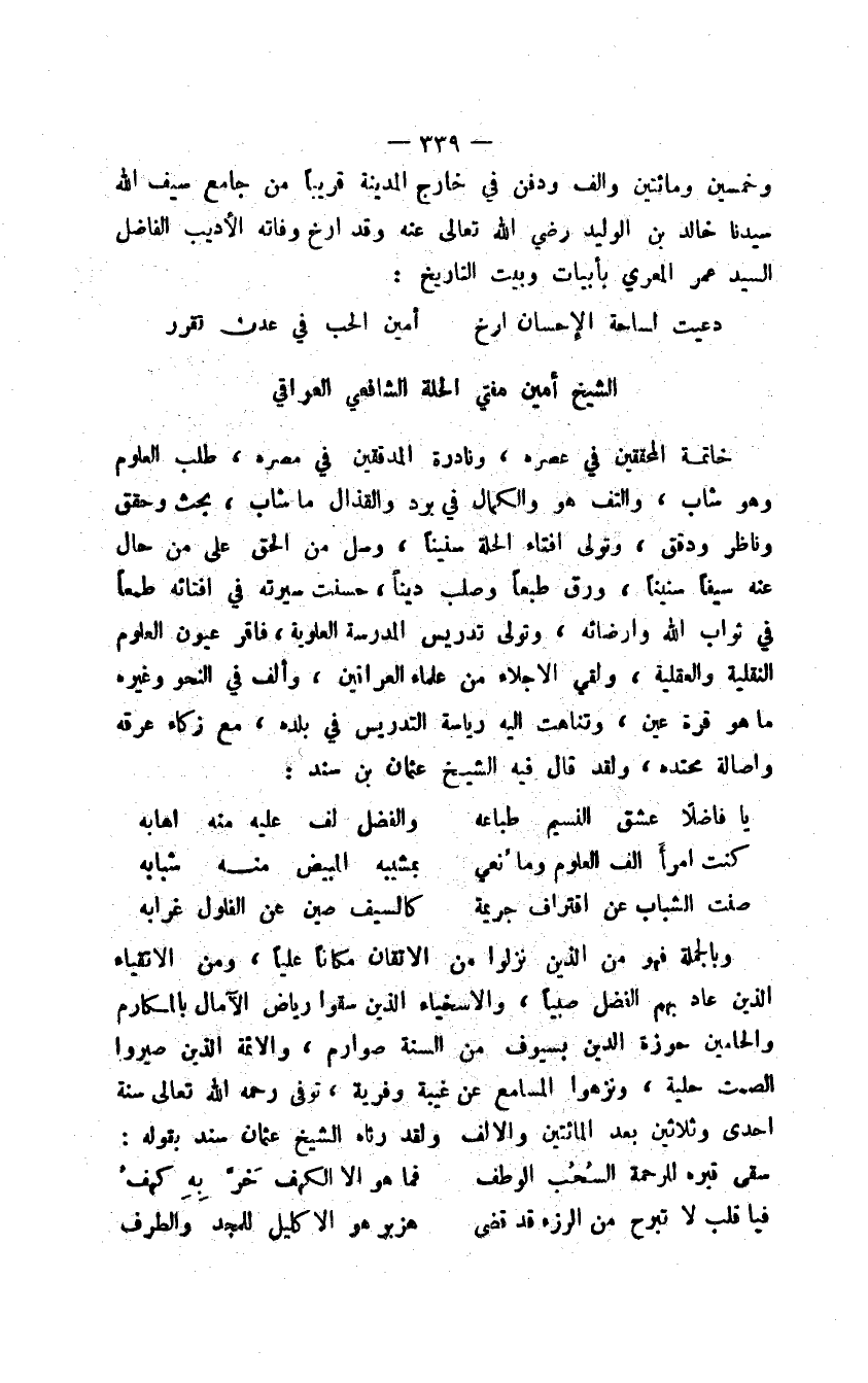 الشيخ أمين مفتي الحلة الشافعي العراقي
