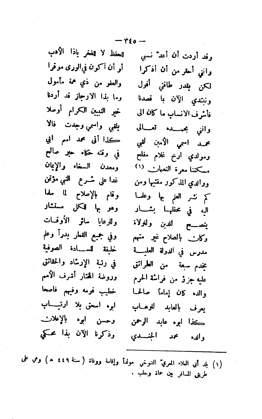 وقد أردت أن أعد نسبي ... للحفظ لا للفخر يا ذا الأدب