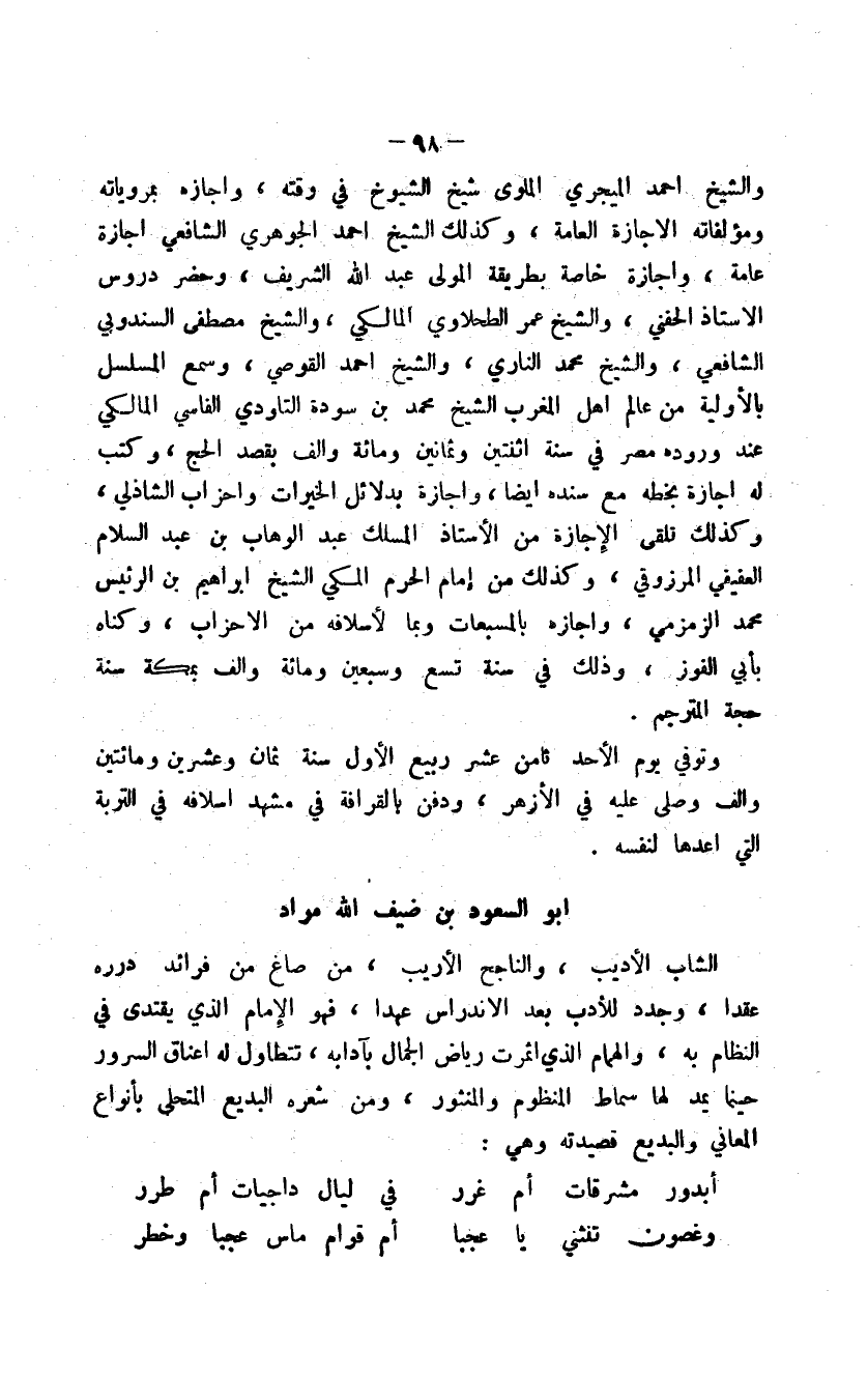 الشاب الأديب، والناجح الأريب، من صاغ من فرائد درره عقداًن وجدد للأدب بعد الاندراس عهداًن فهو الإمام الذي يقتدى في النظام به، والهمام الذي أثمرت رياض الجمال بآدابه، تتطاول له أعناق السرور حينما يمد لها سماط المنظوم والمنثور، ومن شعره البديع المتحلي بأنواع المعاني والبديع قصيدته وهي: