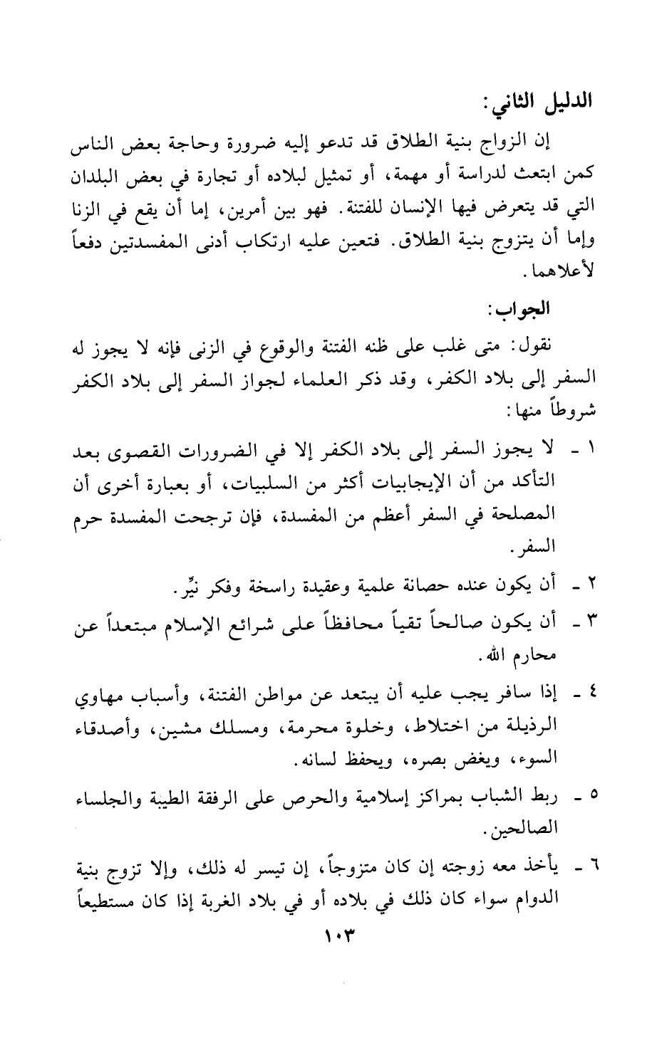 6 - يأخذ معه زوجته إن كان متزوجًا، إن تيسر له ذلك، ,إلا تزوج بنية الدوام سواء كان ذلك في بلاده أو في بلاد الغربة إذا كان مستطيعًا