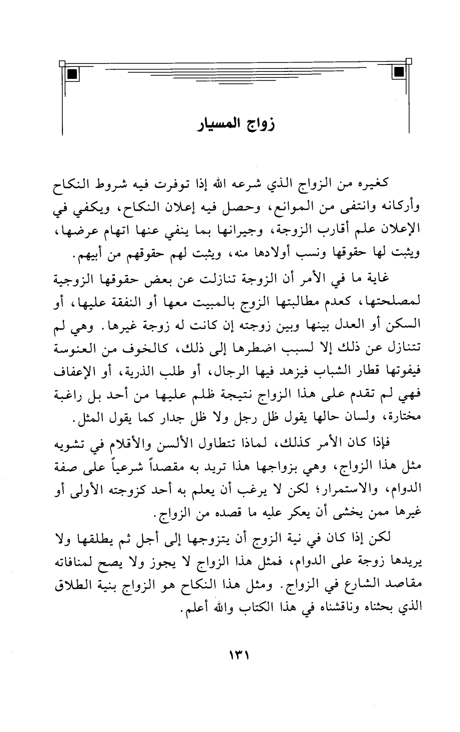 كتاب الزواج بنية الطلاق من خلال أدلة الكتاب والسنة ومقاصد الشريعة الإسلامية