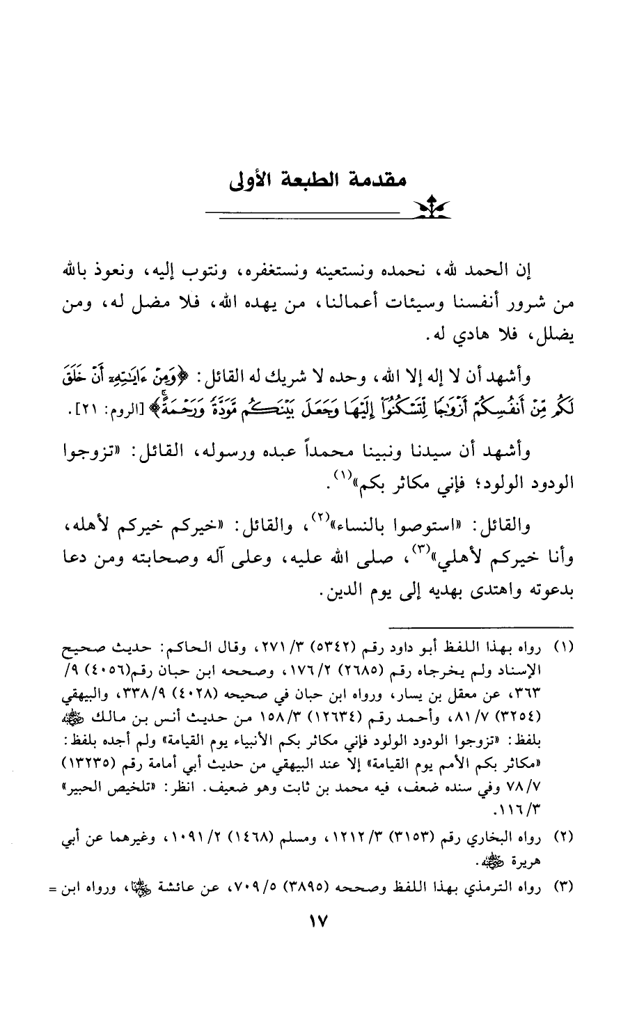وأشهد أن سيدنا ونبينا محمدًا عبده ورسوله، القائل: «تزوجوا الودود الولود؛ فإني مكاثر بكم» (¬1).