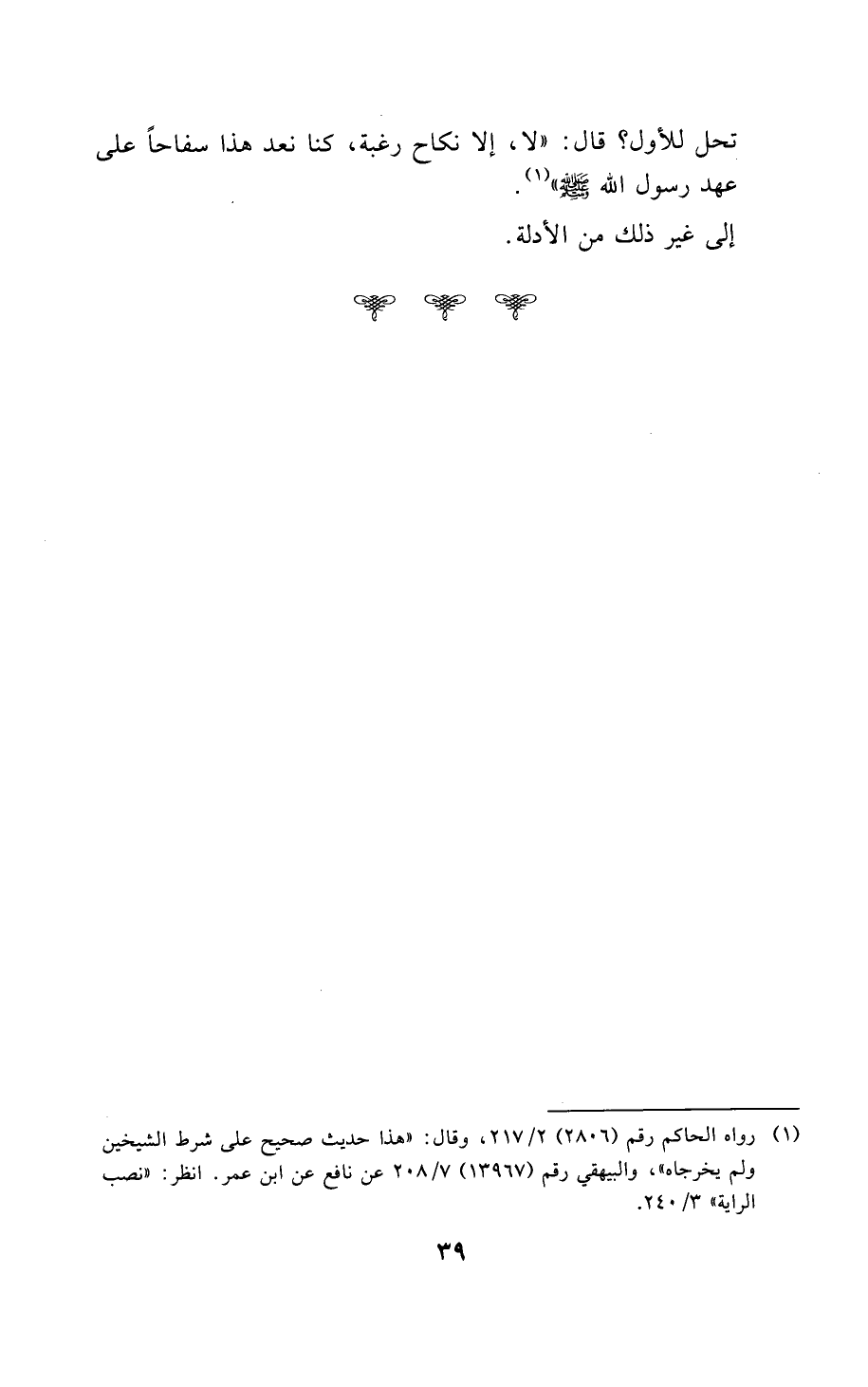 (¬1) رواه الحاكم رقم (2806) 2/ 217، وقال: «هذا حديث صحيح على شرط الشيخين ولم يخرجاه»، والبيهقي رقم (13967) 7/ 208 عن نافع عن ابن عمر. انظر: «نصب الراية» 3/ 240.