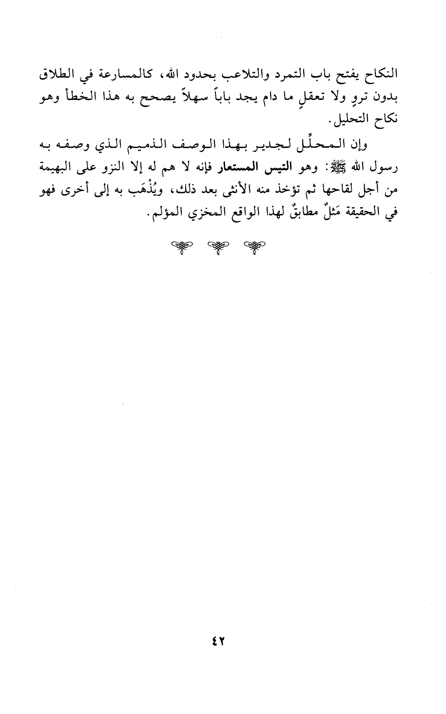النكاح يفتح باب التمرد والتلاعب بحدود الله، كالمسارعة في الطلاق بدون تروٍ ولا تعقل ما دام يجد بابًا سهلاً يصحح به هذا الخطأ وهو نكاح التحليل.