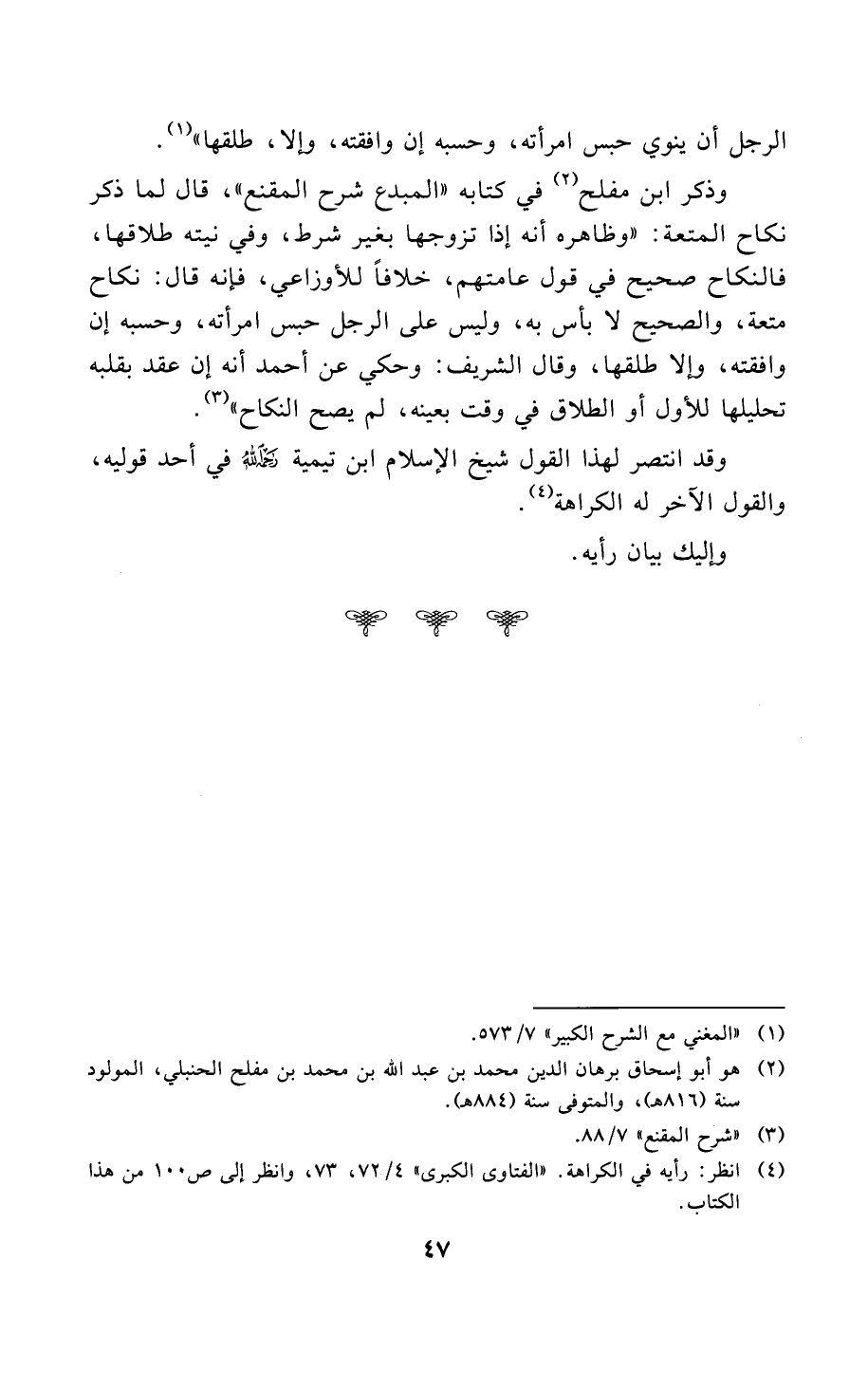 (¬4) انظر: رأيه في الكراهة. «الفتاوى الكبرى» 4/ 72، 73، وانظر إلى ص100 من هذا الكتاب.