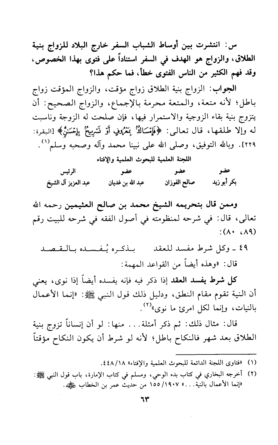 (¬1) «فتاوى اللجنة الدائمة للبحوث العلمية والإفتاء» 18/ 448.