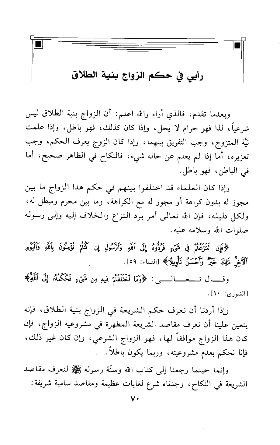كتاب الزواج بنية الطلاق من خلال أدلة الكتاب والسنة ومقاصد الشريعة الإسلامية