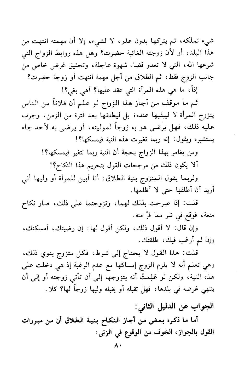 أما ما ذكره بعض من أجاز النكاح بنية الطلاق أن من مبررات القول بالجواز، الخوف من الوقوع في الزنى: