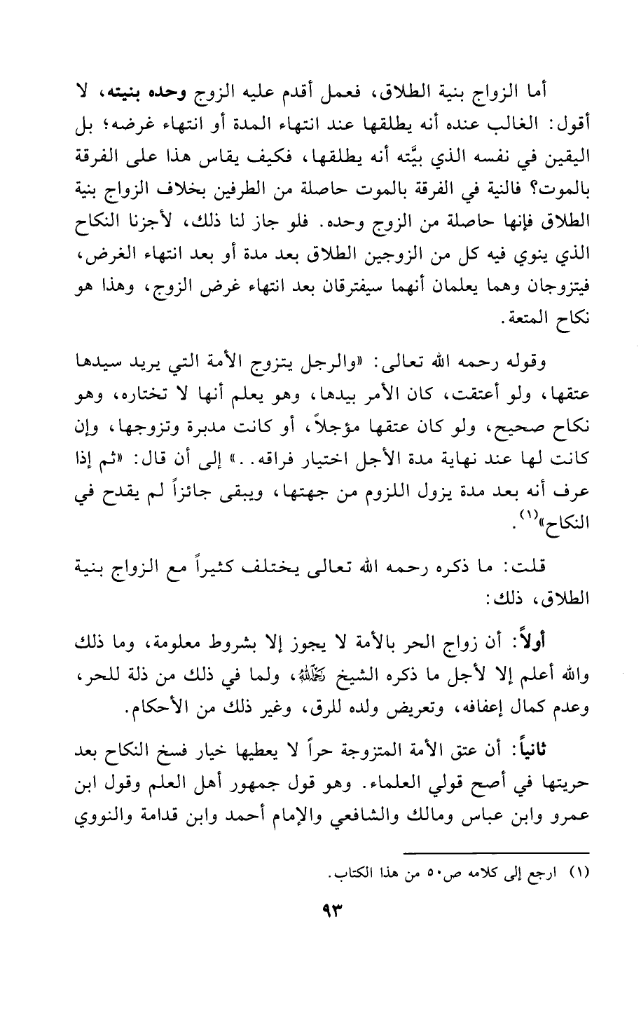 قلت: ما ذكره رحمه الله تعالى يختلف كثيرًا مع الزواج بنية الطلاق، ذلك: