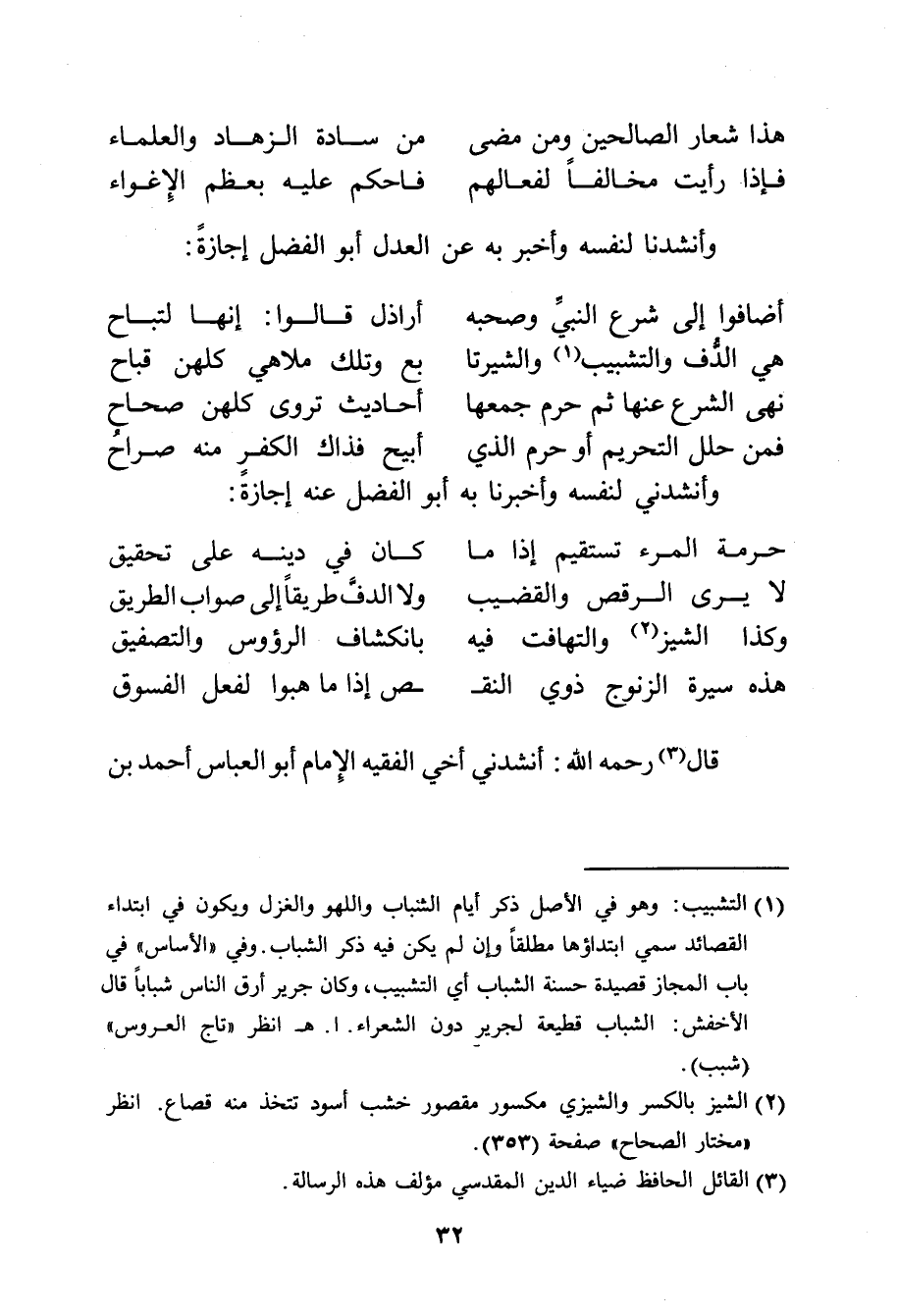 لا يَرَى الرَقصُ واَلقَضَيبُ ... وَلا الدَفّ طَريقاً إلِى صَوابِ الطَريقِِ
