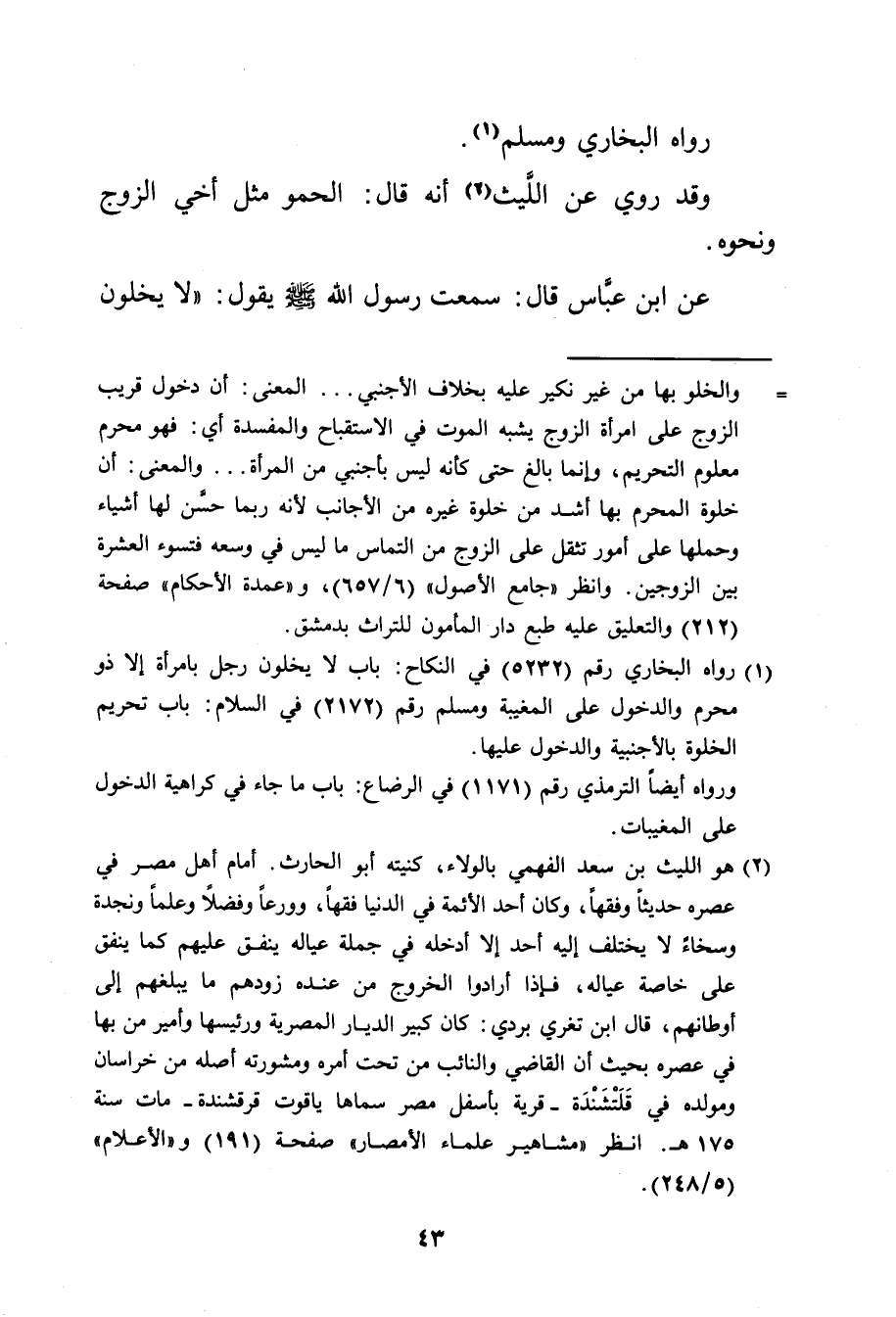 عن ابن عباس قال: سمعت رسول الله صَلَّى اللهُ عَلَيْهِ وَسَلَّمَ يقول: (لا يخلون