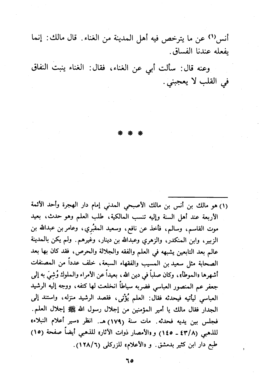 أنس عن ما يترخص فيه أهل المدينة من الغناء. قال مالك: إنما يفعله عندنا الفساق.
