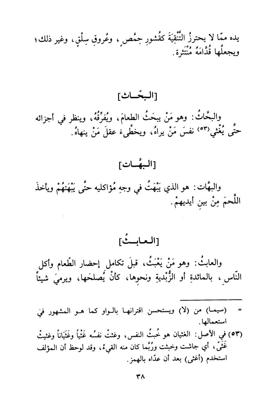 والبحاث: وهو من يبحث الطعام، ويفرقه، وينظر في أجزائه حتى يغثي نفس من يراه، ويخطئ عقل من ينهاه.