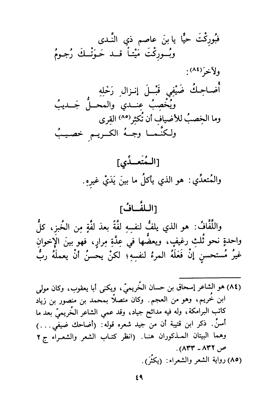 وَما الخِصبُ لِلأَضيافِ أَن يُكثِر القِرى... وَلَكِنَّما وَجهُ الكَريمِ خَصيبُ