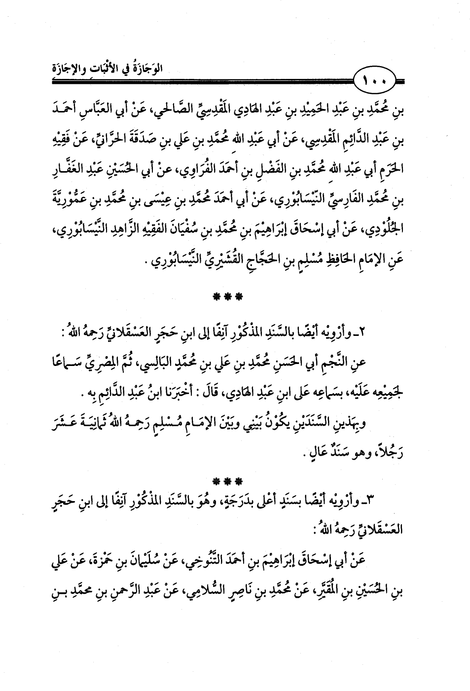 3 ـ وأرْوِيْه أيْضًا بسَنَدٍ أعْلى بدَرَجَةٍ، وهُوَ بالسَّنَدِ المذْكُوْرِ آنِفًا إلى ابنِ حَجَرٍ العَسْقَلانيِّ رَحِمهُ اللهُ: