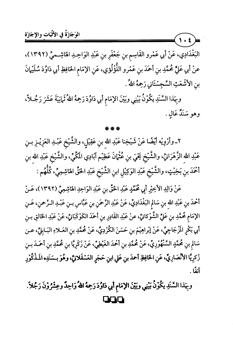 وبِهَذا السَّنَدِ يكُوْنُ بَيْنِي وبَيْنَ الإمَامِ أبي دَاوُدَ رَحِمهُ اللهُ وَاحِدٌ وعِشْرُوْنَ رَجُلاً.