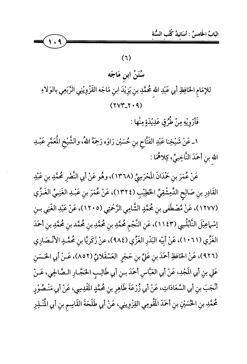 للإمَامِ الحَافِظِ أبي عَبْدِ اللهِ مُحمَّدِ بنِ يَزِيْدَ ابنِ مَاجَه القَزْوِيْنِي الرَّبَعِي بالوَلاءِ