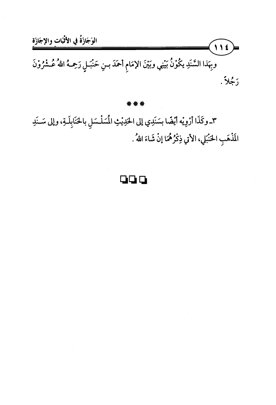 3 ـ وكَذَا أرْوِيْه أيْضًا بسَنَدِي إلى الحَدِيْثِ المُسَلْسَلِ بالحَنَابِلَةِ، وإلى سَنَدِ المَذْهَبِ الحَنْبَلي، الأتي ذِكْرُهُمَا إنْ شَاءَ اللهُ.