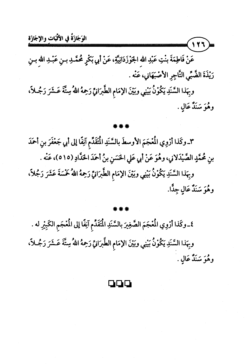 4 ـ وكَذا أرْوِي المُعْجَمَ الصَّغِيرَ بالسَّنَدِ المُتَقَدِّمِ آنِفًا إلى المُعْجَمِ الكَبِيْرِ له.
