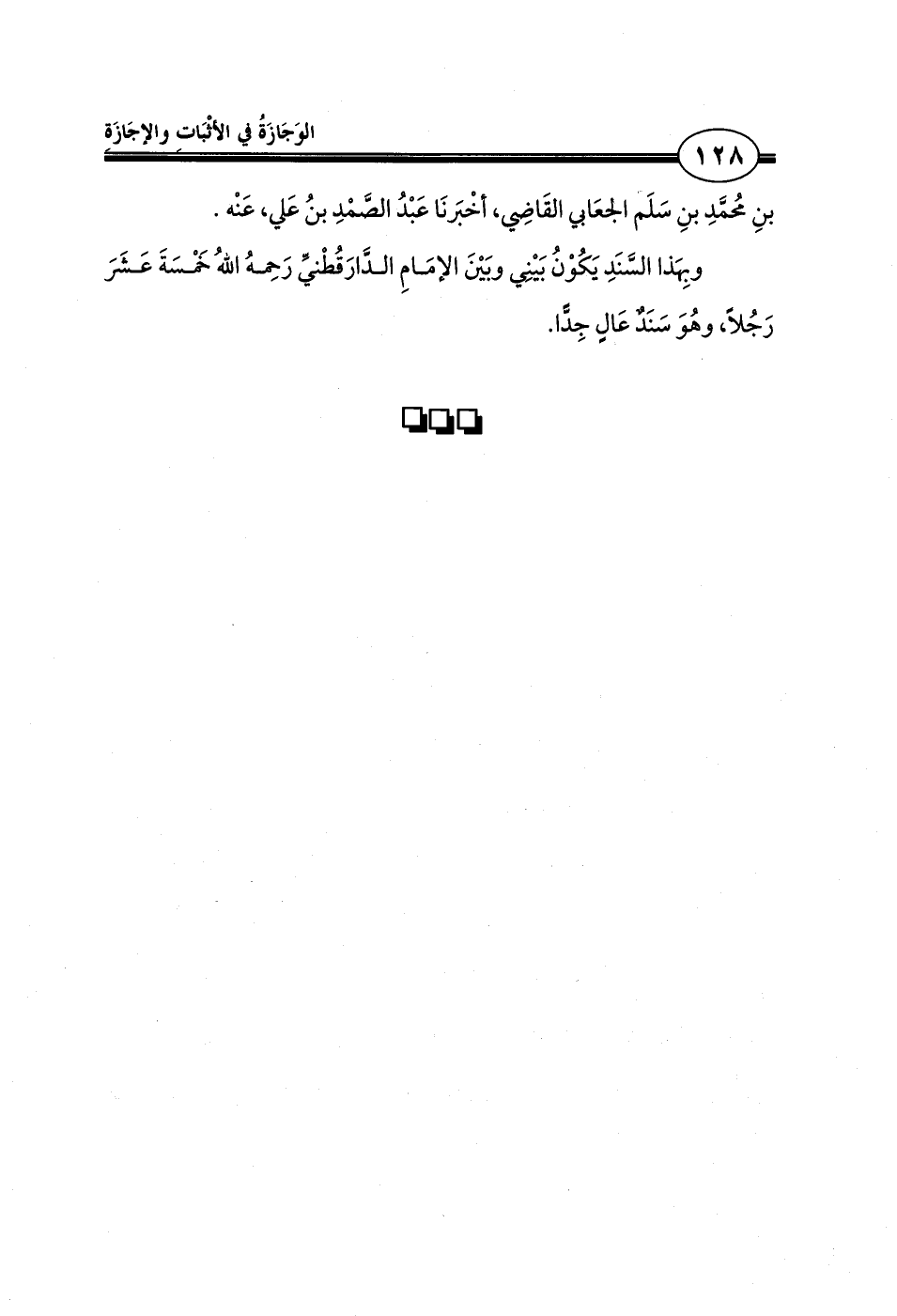 وبِهَذا السَّنَدِ يَكُوْنُ بَيْنِي وبَيْنَ الإمَامِ الدَّارَقُطْنيِّ رَحِمهُ اللهُ خَمْسَةَ عَشَرَ رَجُلاً، وهُوَ سَنَدٌ عَالٍ جِدًّا.