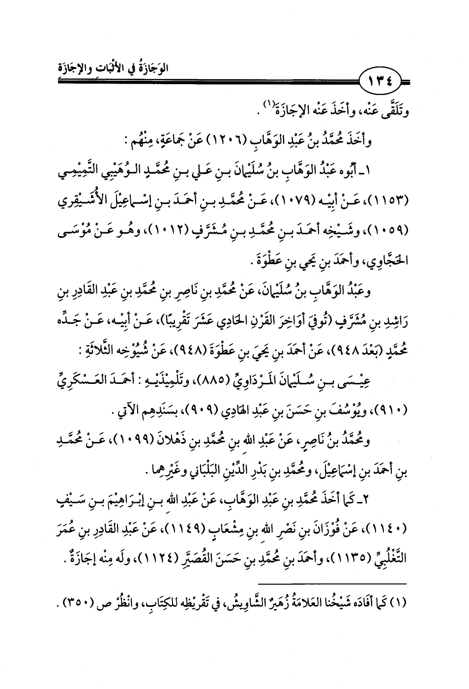 1 ـ أبُوه عَبْدُ الوَهَّابِ بنُ سُلَيْمانَ بنِ عَلي بنِ مُحمَّدٍ الوُهَيْبِي التَّمِيْمِي (1153)، عَنْ أبِيْه (1079)، عَنْ مُحمَّدِ بنِ أحمَدَ بنِ إسْماعِيْلَ الأُشَيْقِري (1059)، وشَيْخِه أحمَدَ بنِ مُحمَّدِ بنِ مُشَرَّفٍ (1012)، وهُو عَنْ مُوْسَى الحَجَّاوِي، وأحمَدَ بنِ يَحي بنِ عَطْوَةَ.