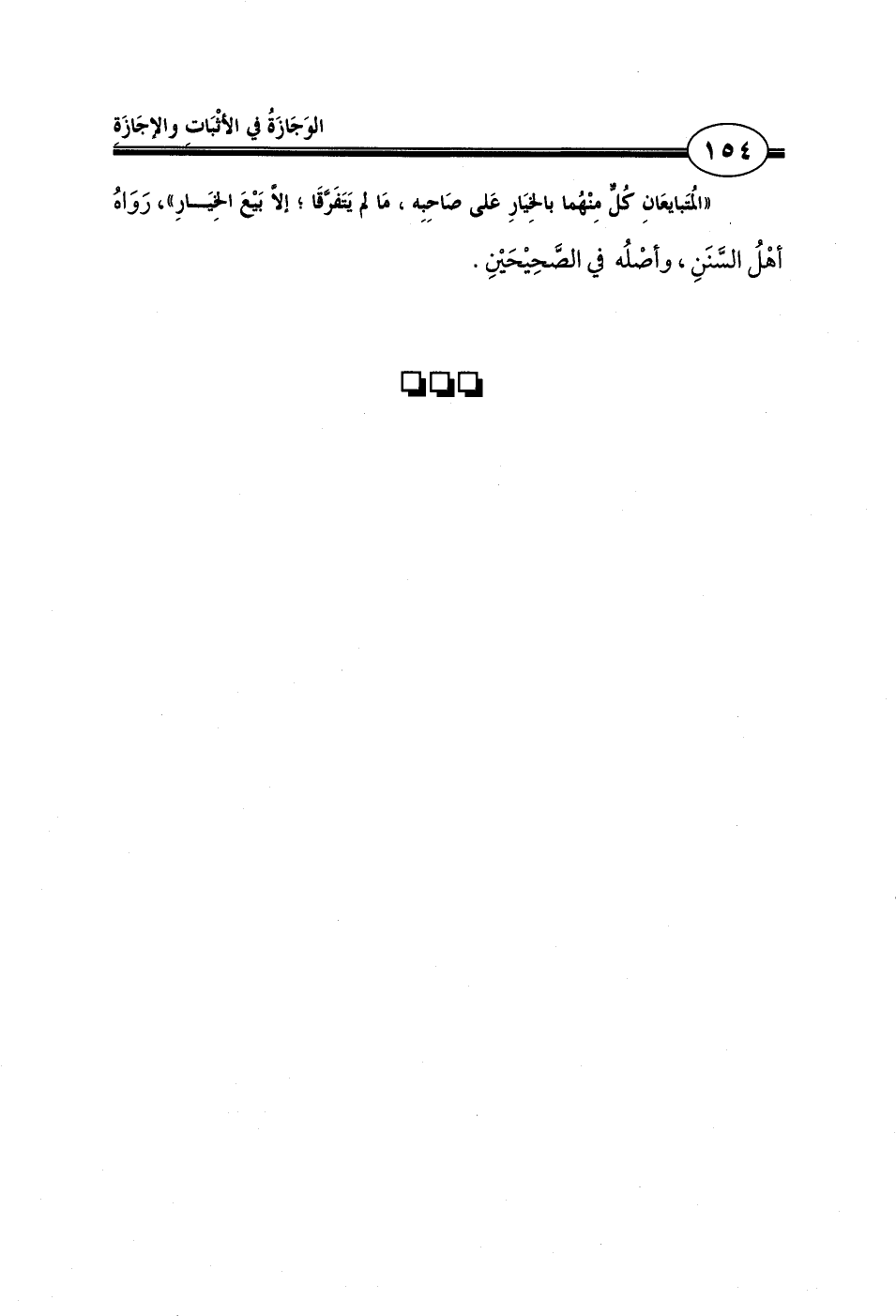 «المُتَبايعَانِ كُلٌّ مِنْهُما بالخِيَارِ عَلى صَاحِبِه، مَا لم يَتَفَرَّقَا؛ إلاَّ بَيْعَ الخِيَارِ»، رَوَاهُ أهْلُ السَّنَنِ، وأصْلُه في الصَّحِيْحَيْنِ.