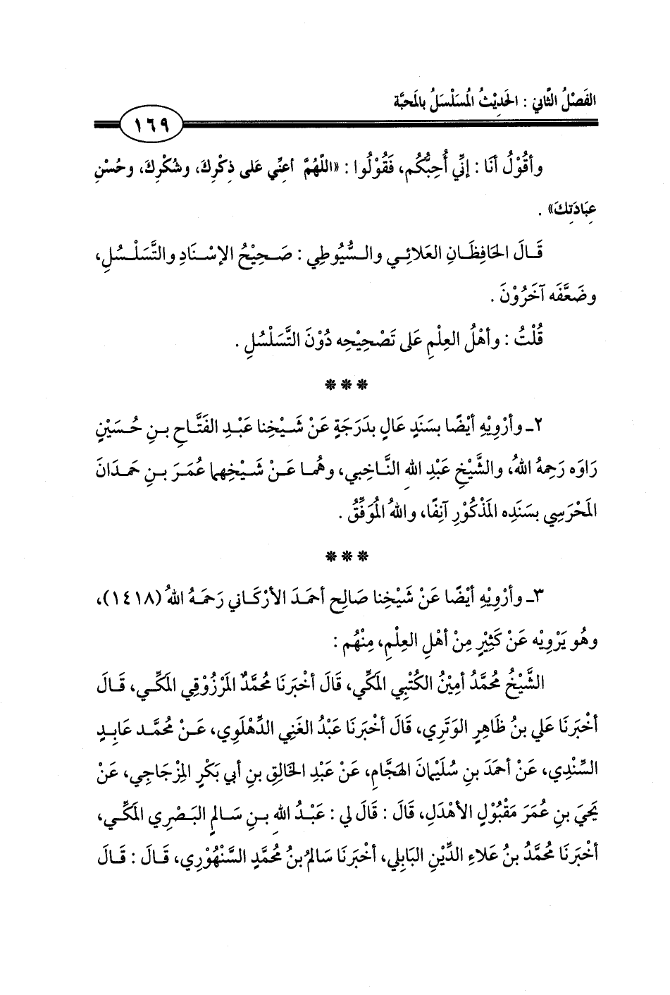 قُلْتُ: وأهْلُ العِلْمِ عَلى تَصْحِيْحِه دُوْنَ التَّسَلْسُلِ.