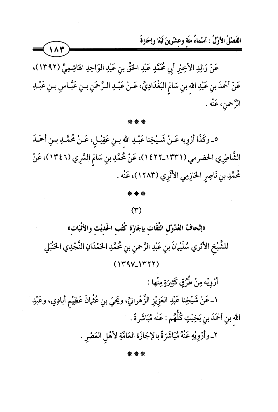 «إتْحافُ العُدُوْلِ الثِّقَاتِ بإجَازَةِ كُتُبِ الحَدِيْثِ والأثْبَاتِ»