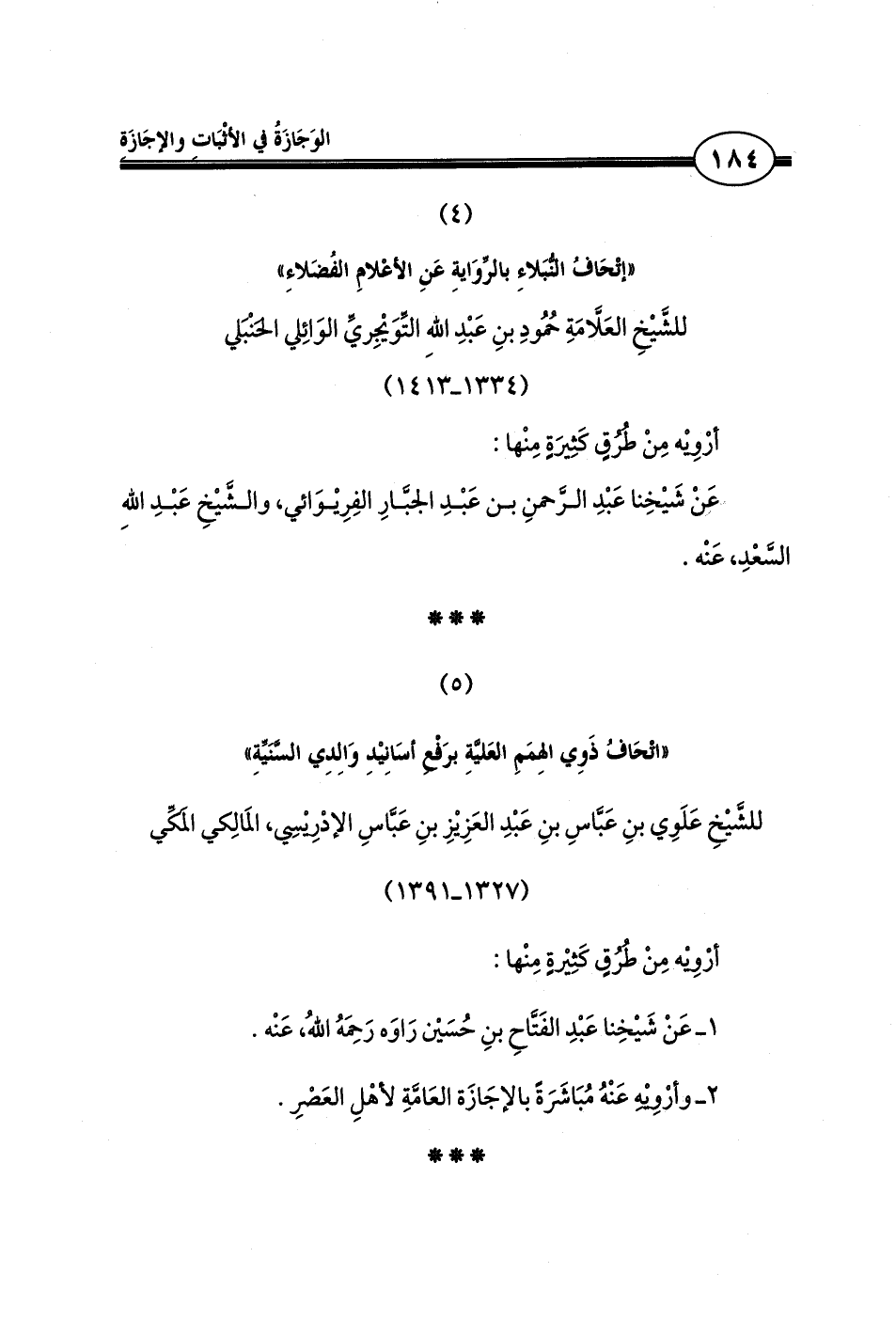 «اتْحَافُ ذَوِي الهِمَمِ العَليَّةِ برَفْعِ أسَانِيْدِ وَالِدِي السَّنَيِّةِ» للشَّيْخِ عَلَوِي بنِ عَبَّاسِ بنِ عَبْدِ العَزِيْزِ بنِ عَبَّاسِ الإدْرِيْسِي، الشَّهِيْرِ بالمَالِكي المَكِّي (1327 ـ 1391)