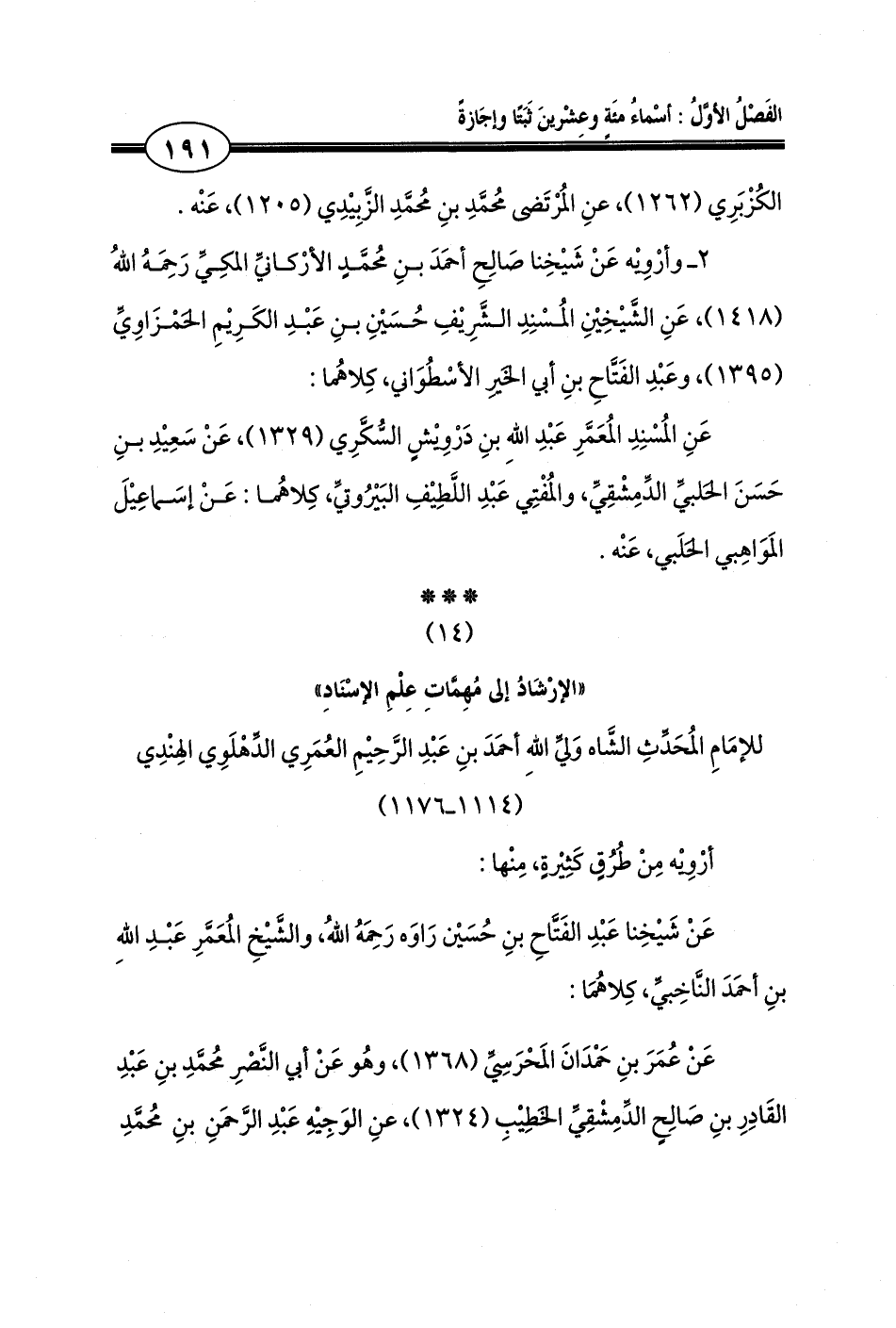 2 ـ وأرْوِيْه عَنْ شَيْخِنا صَالِحِ أحمَدَ بنِ مُحمَّدٍ الأرْكانيِّ المكِيِّ رَحِمَهُ اللهُ (1418)، عَنِ الشَّيْخِيْنِ المُسْنِدِ الشَّرِيْفِ حُسَيْنِ بنِ عَبْدِ الكَرِيْمِ الحَمْزَاوِيِّ (1395)، وعَبْدِ الفَتَّاحِ بنِ أبي الخَيرِ الأسْطُوَاني، كِلاهُما: