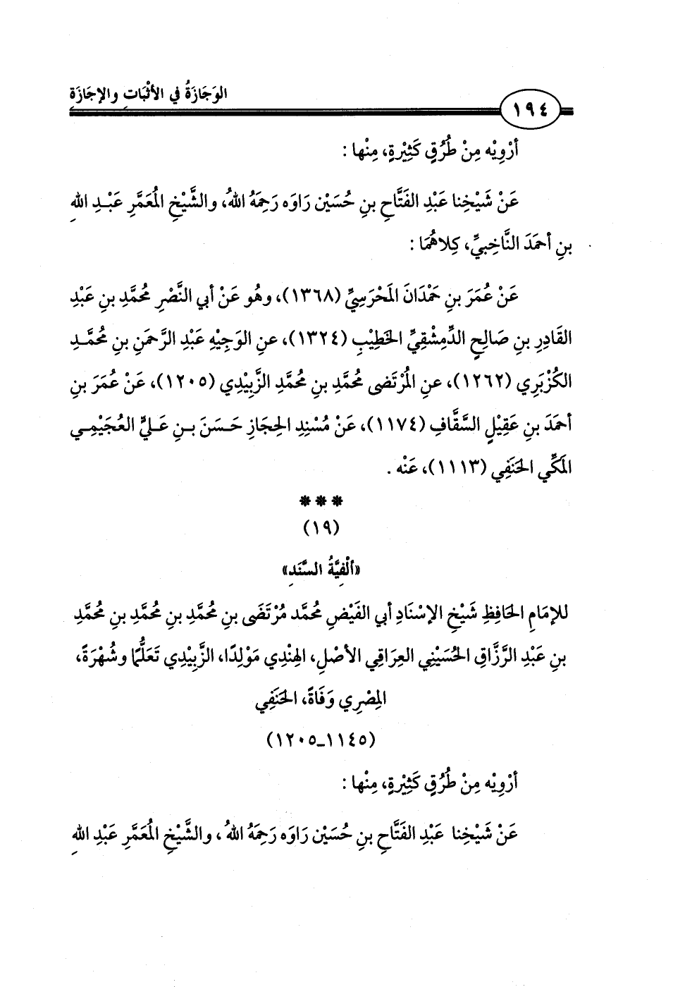 للإمَامِ الحَافِظِ شَيْخِ الإسْنَادِ أبي الفَيْضِ مُحمَّد مُرْتَضَى بنِ مُحمَّدِ بنِ مُحمَّدِ بنِ مُحمَّدِ بنِ عَبْدِ الرَّزَّاقِ الحُسَيْنِي العِرَاقِي الأصْلِ، الهِنْدِي مَوْلِدًا، الزَّبِيْدِي تَعَلُّمًا وشُهْرَةً، المِصْرِي وَفَاةً، الحَنَفِي